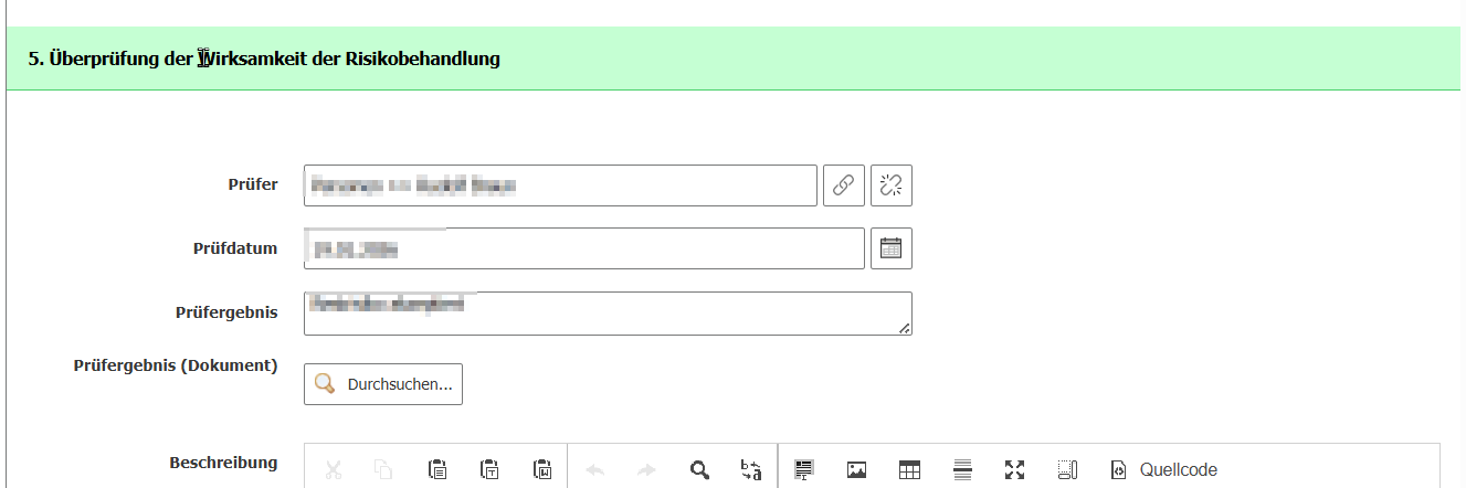 Konkret möchte ich gerne für den Punkt 5. Überprüfung der Wirksamkeit der Risikobehandlung für alle ausgewählten Risiken den gleichen Überprüfer eintragen und das gleiche Datum.